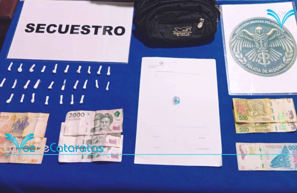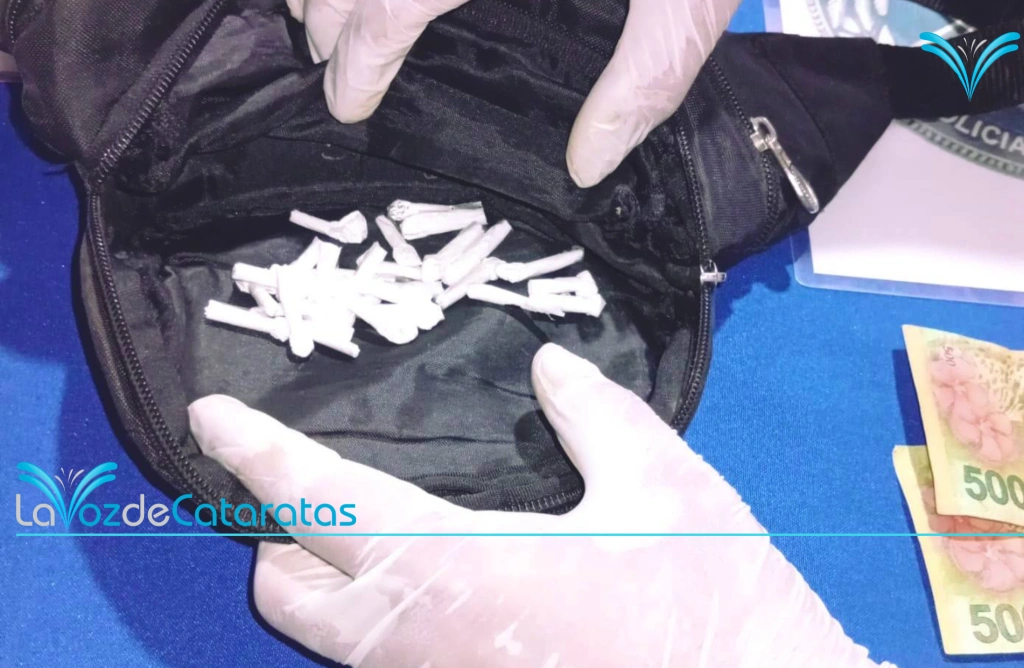 Durante la inspección del lugar, en el sector de sanitarios masculinos, se encontró una riñonera negra abandonada. En su interior había varios envoltorios con una sustancia que, tras la intervención del personal de la División Drogas Peligrosas, arrojó resultado positivo para clorhidrato de cocaína. En total, se secuestraron 28 envoltorios y dinero en efectivo.